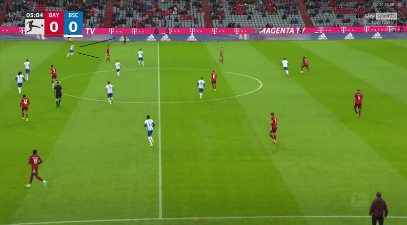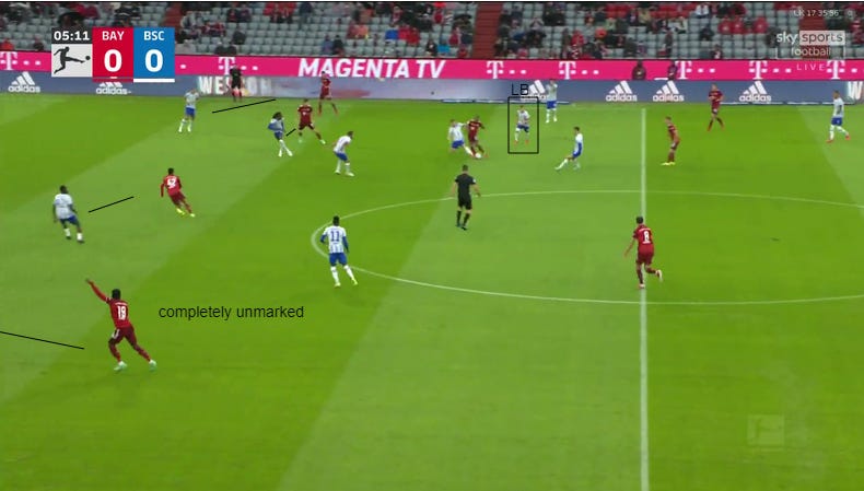 Matchday 3  saw Nagelsmann use Bayern academy graduate Josip Stanišić in a specialized way to combat Hertha Berlin. Here is breakdown of Bayern’s opening goal and how Nagelsmann achieves his preferred “solution”.