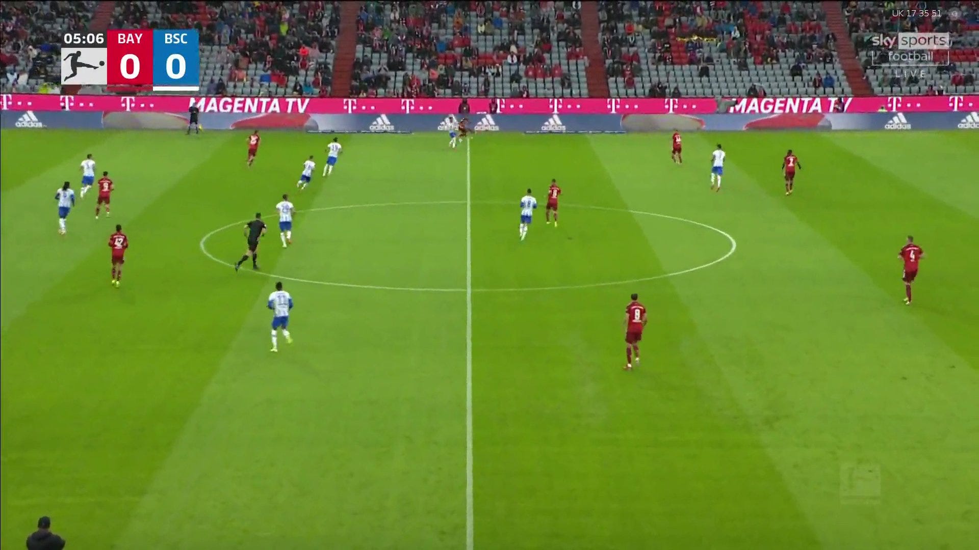 The LB has a decision to make since now he has two players to deal with, he reads the ball out to Serge Gnabry and decides to close him down.